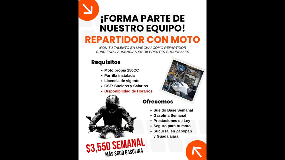 Repartidor Cubre Turnos - Zapopán y Guadalajara